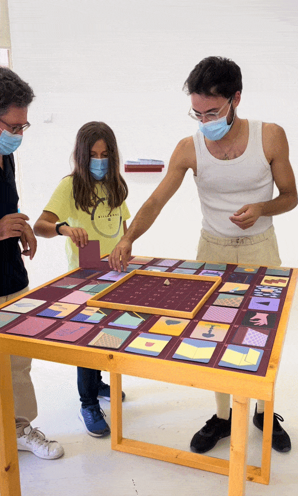 Na parede junto à mesa, as instruções dão ordens como “Confirmar a competência deste jogo”, num convite ao visitante “desconfiado” para aceitar a suspeita e trabalhar nesse modo perante a arte – questionar, interrogar, não tomar como certo nada do que se apresenta, é afinal, a modalidade da arte que se vê a si mesma enquanto jogo. Nem mesmo o lance é feito por elementos fixos: as instruções estabelecem que se pode usar moedas, búzios, pedras, ou dados, o que remete para usos mais sérios e pelo menos tão antigos, como as artes divinatórias do I-Ching.
